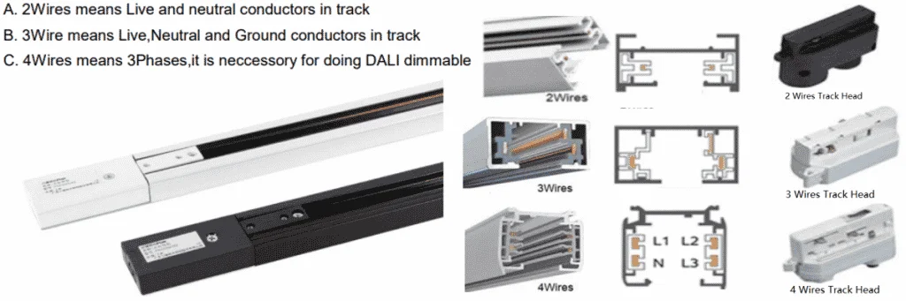 As mentioned above, LED track lights include 2-wire, 3-wire, and 4-wire track lights, which correspond to the corresponding track bars. Different track lights have different points to pay attention to when installing them. Usually, the installation of LED track lights is the installation of a lighting system, including the installation of track rails, the installation of track lights, and the installation of corresponding accessories such as L shape, U shape, and T shape connector adapters.
